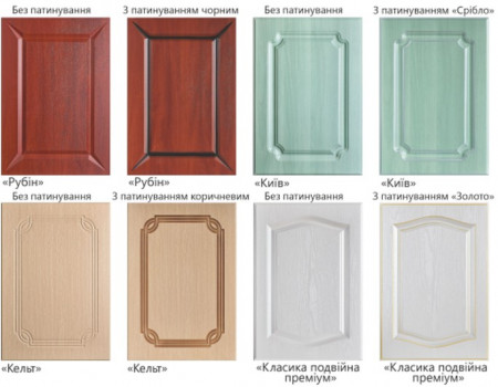 Фасад – МДФ: «Белый супермат», «Ваниль супермат» с патиной «Серебро» и «Золото»