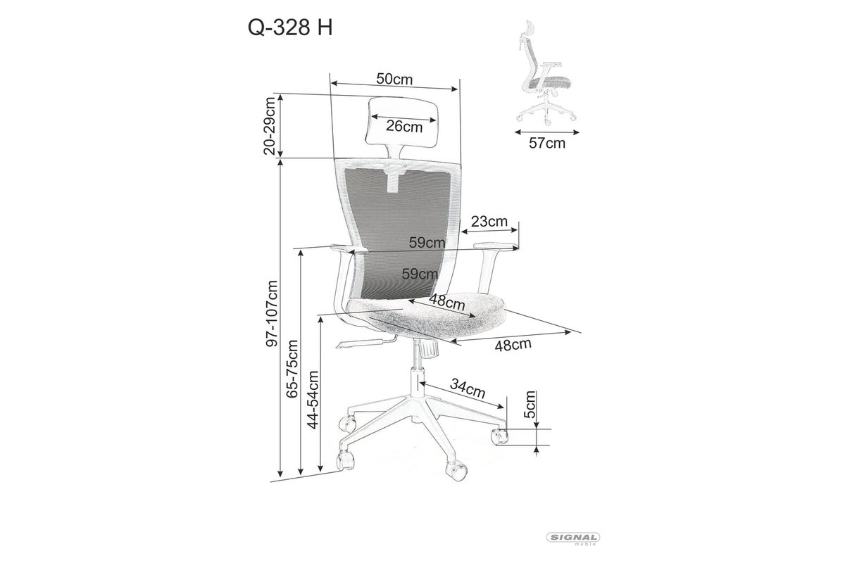 Кресло поворотное с подголовником SIGNAL Q-328H черное, серое/черный каркас - 458934