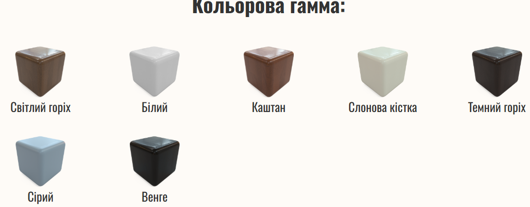 - Цвет изделия Белый, Венге, Каштан, Орех темный, Орех светлый, Серый, Слоновая кость