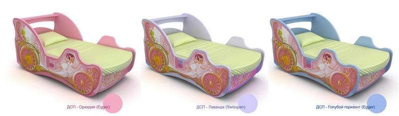 Кровать карета для девочки от 3 до 10 лет, изготавливается из ДСП в цвете: