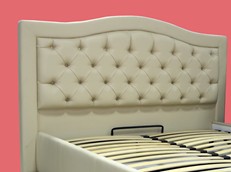 Материал: Изголовье и боковины изготовлены из ДСП, с наполнением ППУ и синтепона, которое обшивается тканью или кожзаменителем и крепится к основанию металлического каркаса.