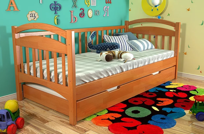 Может быть использована, как дополнительное спальное место. Размер матраса 75 х 180, не выше 15 см. По умолчанию на дно идет ДВП, можно бесплатно заменять на ламели на ленте (в заказе обязательно это указывать), или за доплату 340 грн заказать оба варианта.