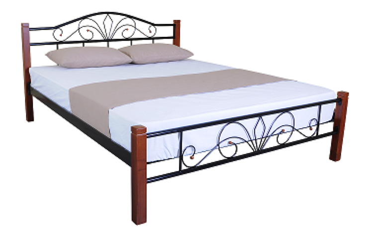 Материал: цельный каркас кровати-метал. Покрашен порошковым способом, черного цвета. Массивные ножки кровати изготовлены из натурального дерева Бук, в цветовой гамме Орех.