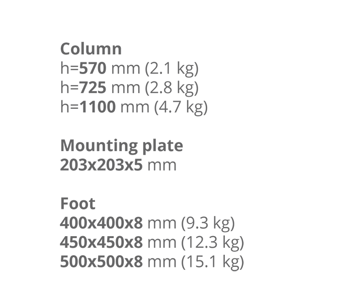 Цветовая гамма опор: черный, серый, светло-серый, белый, бежевый (Окрашена полимерно-порошковой краской для наружного применения по RAL: 1015, 7016, 7035, 7040, 9005, 9006, 9016.)