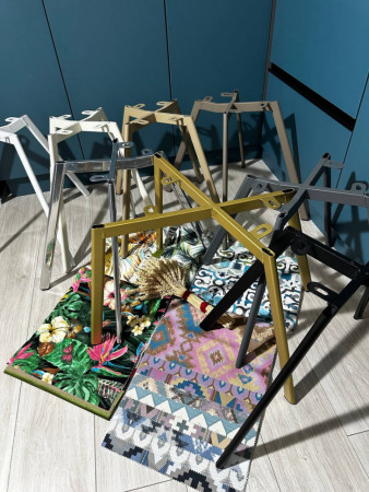 Каркас выполнен из металла крест-накрест, поэтому выдерживают большую нагрузку. Цветовая гамма металла: черный, белый, серый, мокко, бежевый, молочный.