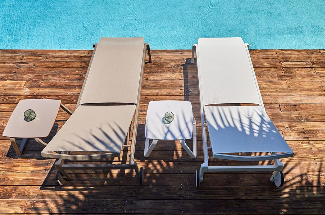 Для шезлонгов используют ткань Phifertex - антибактериальная, устойчива к влажности и легко чистится.