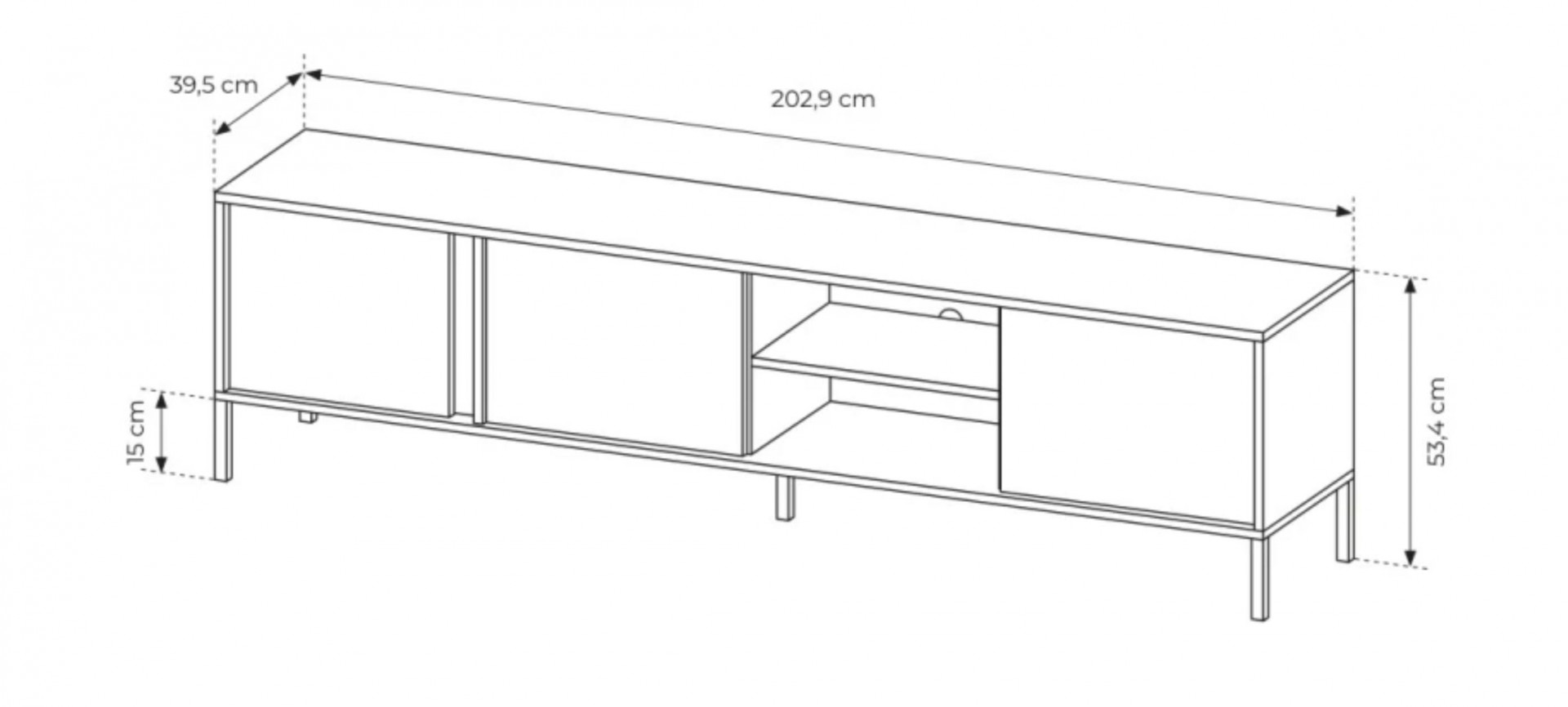 -Тумба под телевизор Perfect Home Ларс/Lars 3-дверная 3D/203 Антрацит