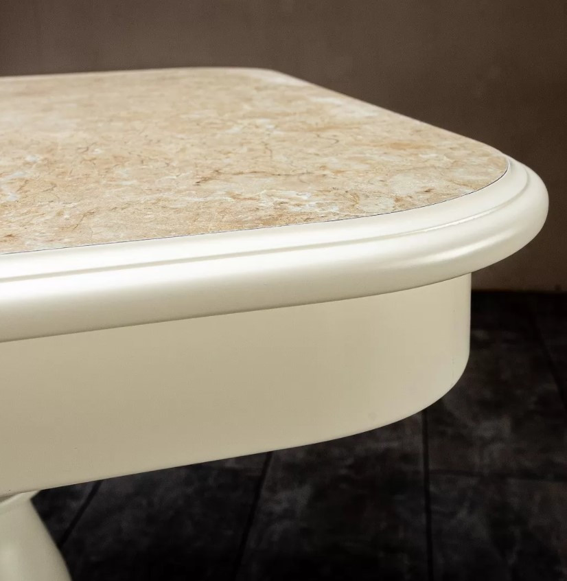 Столешница изготовлена из МДФ + шпон. Цветовую гамму смотрите в фото. Возможно нанесение пластиком.