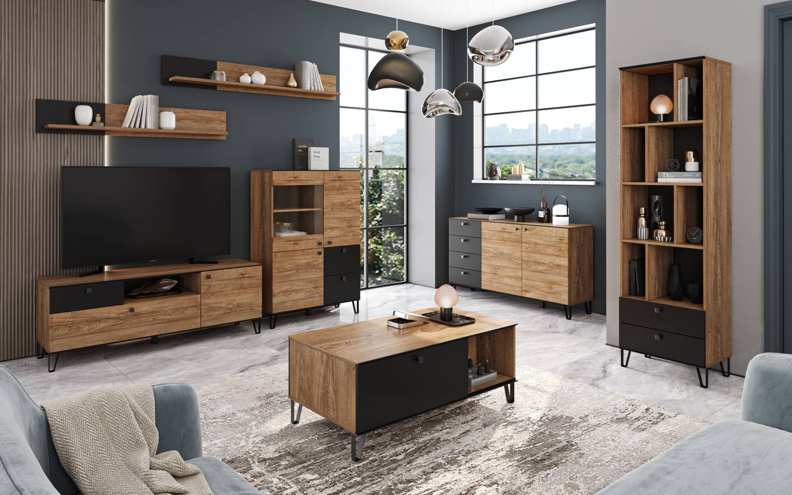 Витрина TOP- LAGOM Вейл черный/дуб - 453990